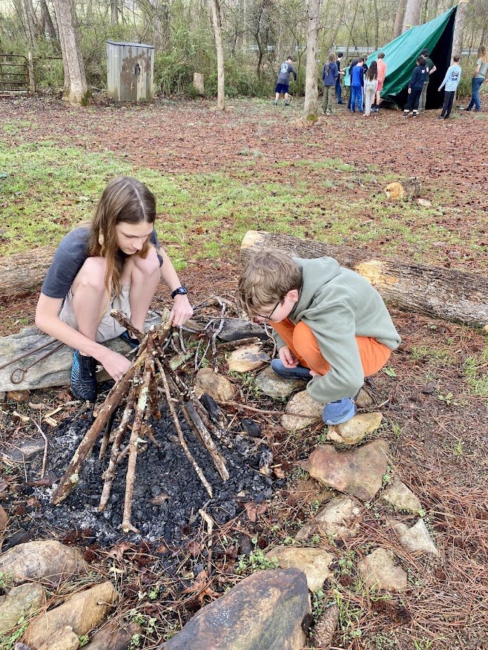 New this Spring! We are proud to offer Wilderness Skills Camp, our newest offering for Homeschool teens. Led by experienced camp leaders Hunter Roberts and Farmer Dan, this camp will offer basic Wilderness skills in a camp setting, concentrating on building confidence and connection in campers as they complete tasks by hand together. Learn basic first aid, fire safety, knots and simple navigation, and have fun exploring the natural world.